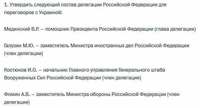 🇷🇺 Состав делегации, которая поедет на переговоры с украинцами