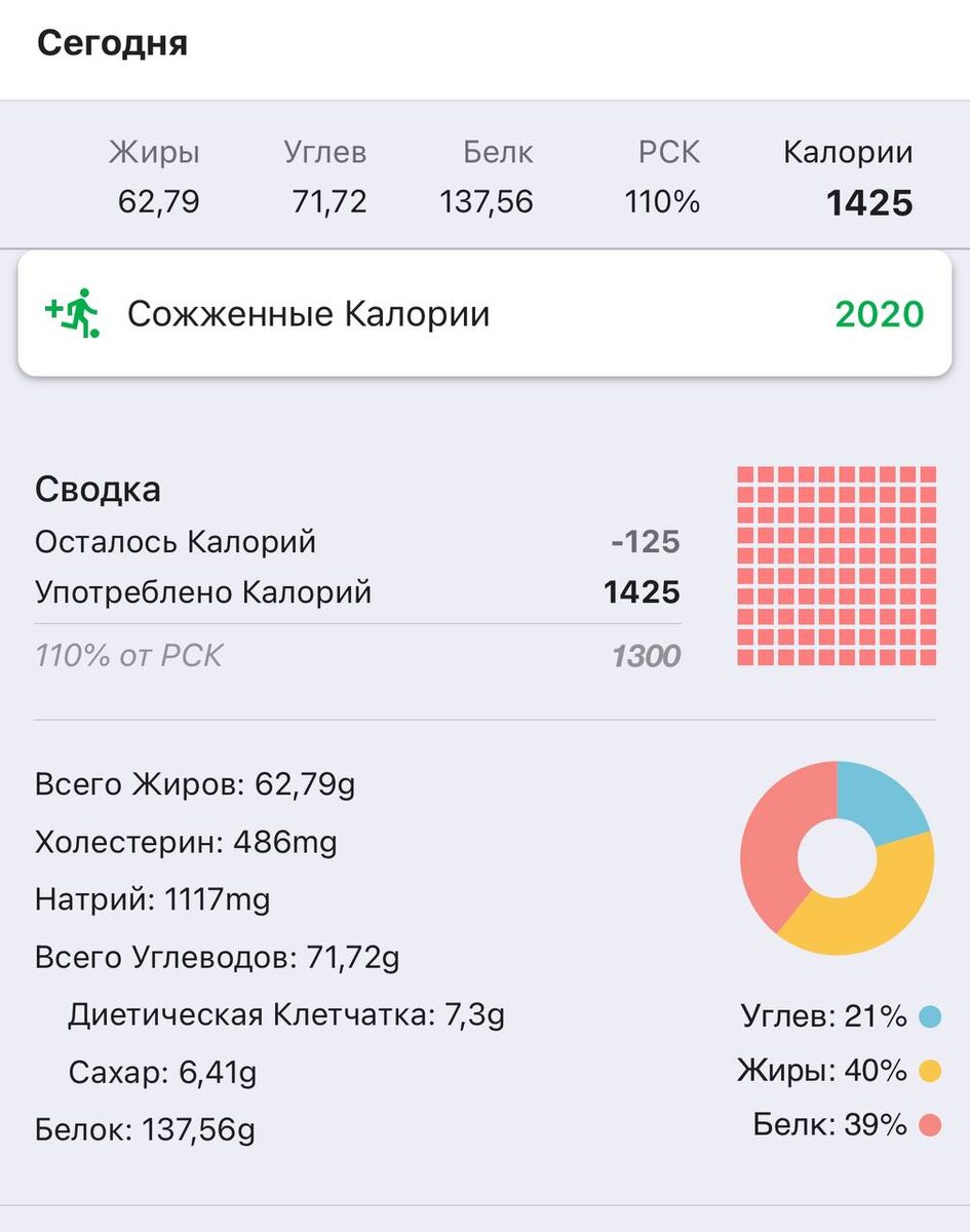 Третий день похудения. Отчет за день. Белка 137г - больше нормы. Жиров 62г - многовато… позволила ореховый батончик на заправке - вот и жиры. И была форель и авокадо сегодня. Тренировала ноги, так что все уйдет в пользу 😂 Опять в 1300 не уложилась. 1425 сегодня. И мне как-то голодно. Но и обедать нормально не получилось. Был завтрак и ужин и батончик перекусом. Просто мысли на тему. До конца недели буду смотреть калораж. Если пойму, что 1300 мало по моим ощущениям, добавлю до 1500.
