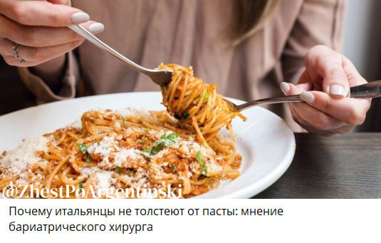 Почему итальянцы не толстеют от пасты: мнение бариатрического хирурга Итальянцы могут есть пасту и не толстеть благодаря традициям питания. Бариатрический хирург объясняет, что секрет в качестве продуктов и умеренности. Итальянская кухня богата овощами и оливковым маслом, что способствует здоровому пищеварению. Кроме того, итальянцы предпочитают домашнюю еду и редко переедают. Эти привычки помогают поддерживать здоровую массу тела, несмотря на любовь к пасте (https://www.clarin.com/internacional/italianos-engordan-comer-pasta-responde-cirujano-bariatrico_0_A1h0ZGBSJI.html)