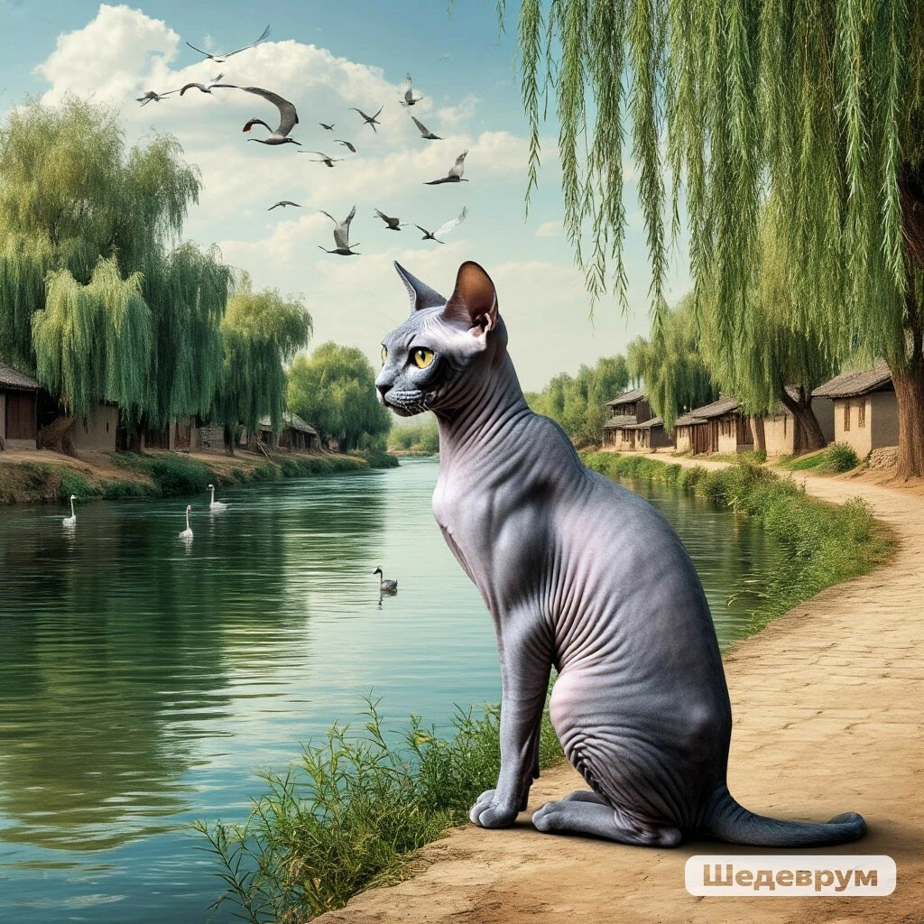 На берегу широкого Дона, где ивы шепчутся с волнами, а в небе танцуют журавли, стояла деревня, в которой никто никогда не ссорился. А всё потому, что там жили донские сфинксы— кошки с серебристой кожей, ушами-крылышками и глазами, похожими на две полные луны. Они умели разговаривать с ветром, знали язык звёзд и учили людей мудрости. А началась история с двух братьев — Ванюши и Петьки.Они дружили с пелёнок: вместе ловили рыбу, строили шалаши и мечтали стать капитанами. Но однажды, когда они мастерили лодку, Ваня случайно сломал Петин нож. — Это мой нож! Ты всё испортил! — закричал Петька, толкнув брата. — Сам виноват! — огрызнулся Ваня, и с тех пор они не разговаривали. Даже сфинксы, которые любили греться на их крыльце, ушли, грустно повив хвостами. Той же ночью случилось чудо. Над Доном взошла огромная звезда, и из её света появилась старейшая сфинкса — Златоокая. Её голос звучал как шёпот реки: — Завтра на рассвете приходите к Камню Согласия. Иначе ваша ссора погубит в