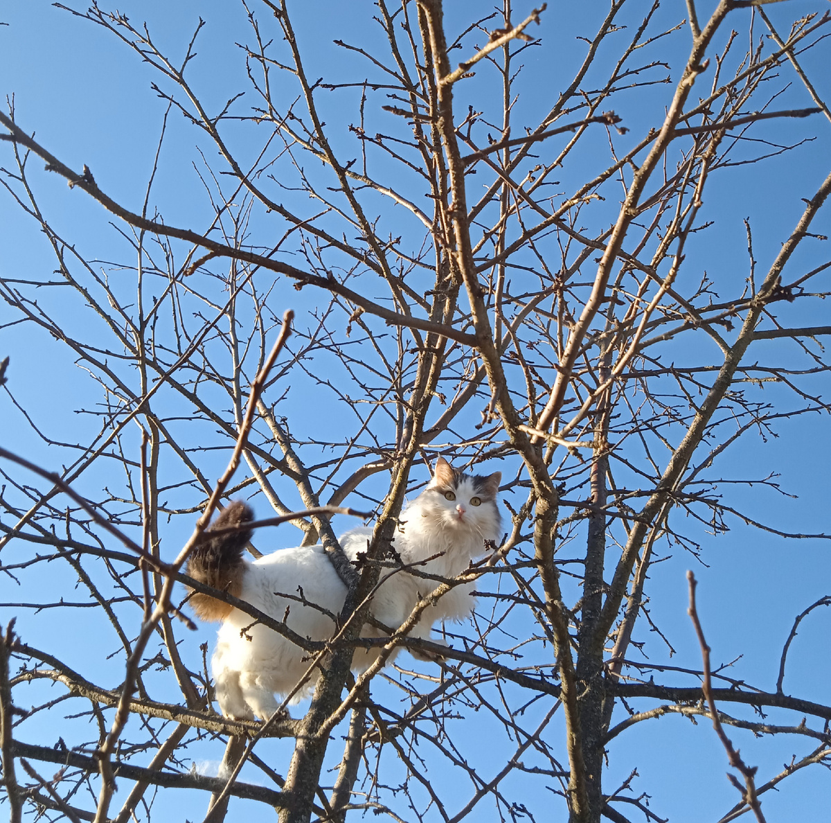 В первую очередь не хочу никого обидеть или оскорбить чьи-то чувства. Рассказываю как все произошло. В субботу перед Пасхой наводили порядок на участке. Собрали мусор и отправили детей вынести его на помойку. Дети радостно вскочили на велосипеды и отправились выполнять задание. Кошка Ася всегда следит и старается участвовать в таких событиях. Она обычно сопровождает нас в пеших походах по поселку. Вот и сейчас она убежала по привычке за нашими велосипедистами, но вернулась минут через пять. И у нее случился весенний тык-дым. Проскакала по участку галопом, залезла на яблоню и стала ждать девчонок. А девчонок все не было, до мусорки около километра от дома, а их все нет. Телефоны они с собой не взяли. Ну а мы решили, что они таким образом пропетляли уборку и уехали кататься дальше. Каково же было наше удивление, когда минут через сорок распахнулась калитка и запыхавшаяся Даша вкатила по очереди два велосипеда. Бросила их на парковке и крикнув - "ща", куда-то убежала. Через несколько ми