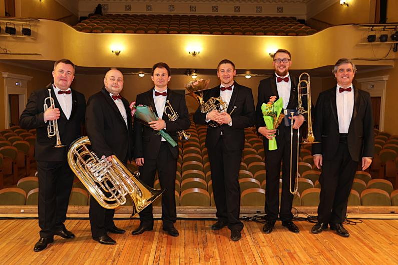 Несмотря на традиционно мощный звук духовых инструментов, музыканты ансамбля сумели придать своему выступлению легкость и изящество. Их исполнение оказалось настолько тонким и воздушным, что казалось, будто звуки свободно парят над залом подобно легкому весеннему бризу. Именно такой эффект создавали солисты — Дмитрий Горбачук (труба), Александр Антанович (труба), Артём Могилёвцев (валторна), Андрей Михалевич (тромбон), Виктор Яриновский (туба) и Михаил Константинов (ударные).