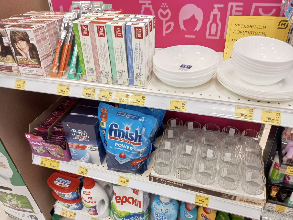 Почему все хорошие акции попадаются именно в тот момент, когда совсем не хочешь тратить денег? Мы ходили с мамой в "Магнит Косметик" ради бытовой химии, на которую бы потратили буквально 150 рублей, но с порога наш взгляд то и дело останавливался на классных скидках и товарах, из-за чего мы и времени много потратили, и ушли аж с двумя пакетами покупок. И ведь набор такой разнообразный, что и посуду купили, и зубную пасту, и гель для душа, и средства для уборки.