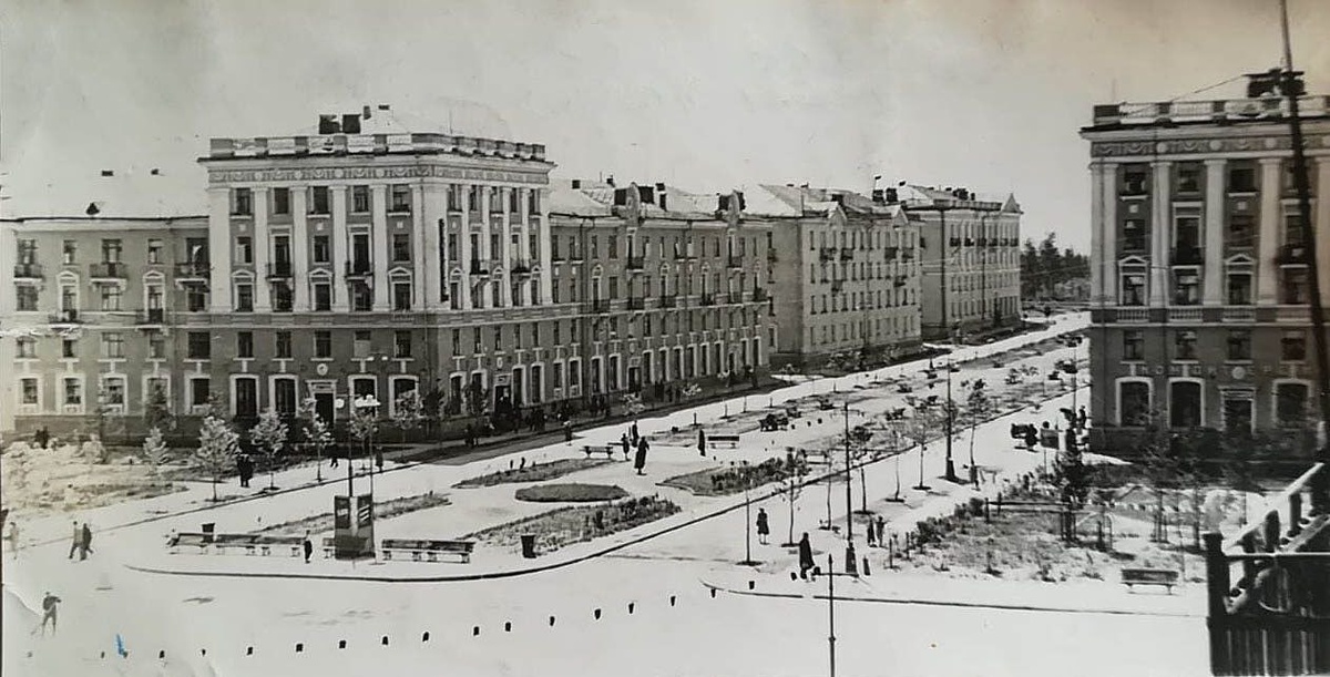 #РетроСеверск 1957 год...Вид со стороны д/к Островского на улицу Культуры (сейчас Леонтичука)..И нет еще памятника Ленину(позднее Островскому). Замечательное-историческое фото Людмилы Добровольской Автор Михаил Васендин