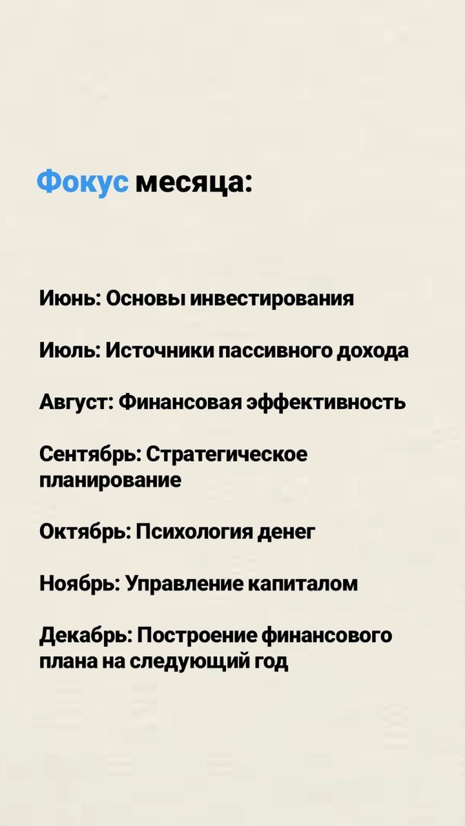 Есть и свой "учебный план": для каждого месяца года свой фокус на определённой теме, и своя библиотека — те темы, которые уже я раскрыла, бережно храним в упорядоченном формате)