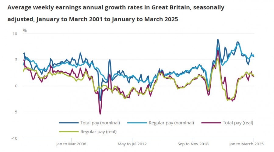 Отчет по рынку труда Великобритании показал, что рост заработной платы остается высоким, несмотря на небольшое снижение – трёхмесячный