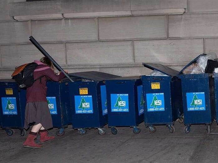 - Еда — «улов» из контейнеров возле супермаркетов. За ночь она находит продуктов на $60: свежие салаты, супы, сыры.