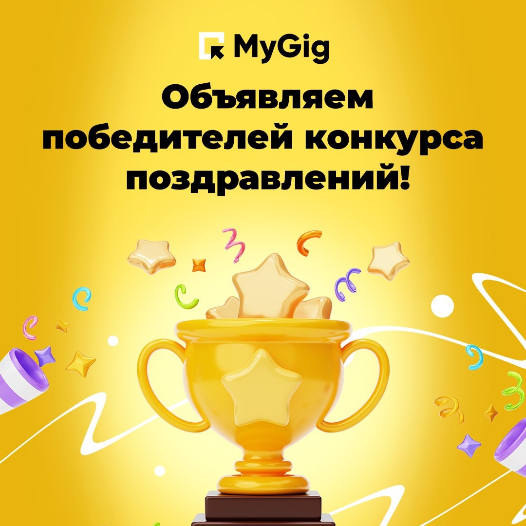 ❗️ Подводим итоги конкурса поздравлений для MyGig 14 мая, в День фрилансера, мы отмечаем преданность, трудолюбие и креативность всех гигеров! В честь этого события готовы порадовать наших победителей конкурса замечательным призом — брендированным набором от MyGig из панамы, питьевой бутылки и шоппера. Ваши поздравления были прекрасны, искренне благодарим всех участников! Более того, мы не удержались от желания наградить даже больше победителей, чем планировалось, потому что вы — лучшие ❤️ 🏆 Победители конкурса: — @Aleks1681 — @mikmaks — @Emintiev — @bdn0201 — @Shadrina_vl — Елена +7 965 *** **05 — Андрей +7 950 *** **44 — @masohinS — @Anastasua_05 — @katiaaraa — @mir_2792 — @Buraynin — Матвей +7 900 *** **70 Завтра свяжемся с каждым призёром лично и предоставим необходимую информацию для получения наборов. Не расстраивайтесь, если в этот раз не смогли проявить себя. У вас есть отличная возможность принять участие в нашем розыгрыше фирменных футболок прямо сейчас — подробнее ⚡️