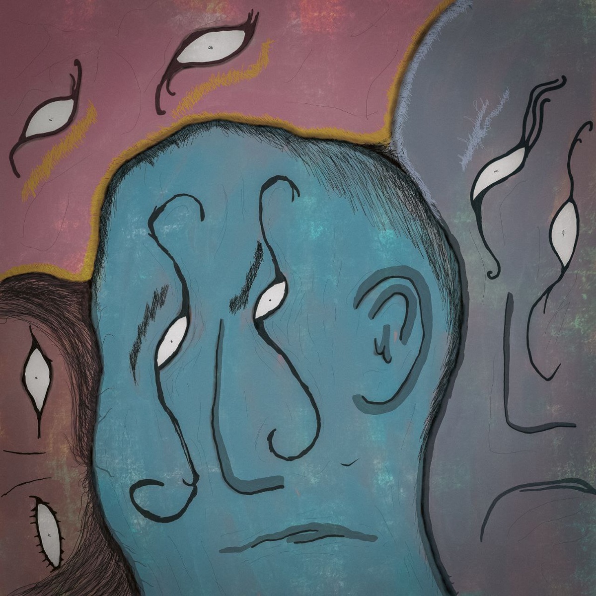 Кстати, обложку для песни Глеб нарисовал в небе над Ираном: «Я слушал песню и рисовал это сегодня в самолёте в небе где-то над Ираном. Возможно, как-то бессознательно я проиллюстрировал свои ощущения от сидения между двумя людьми, не у окна и не у прохода, хотя в моменте об этом не думал».