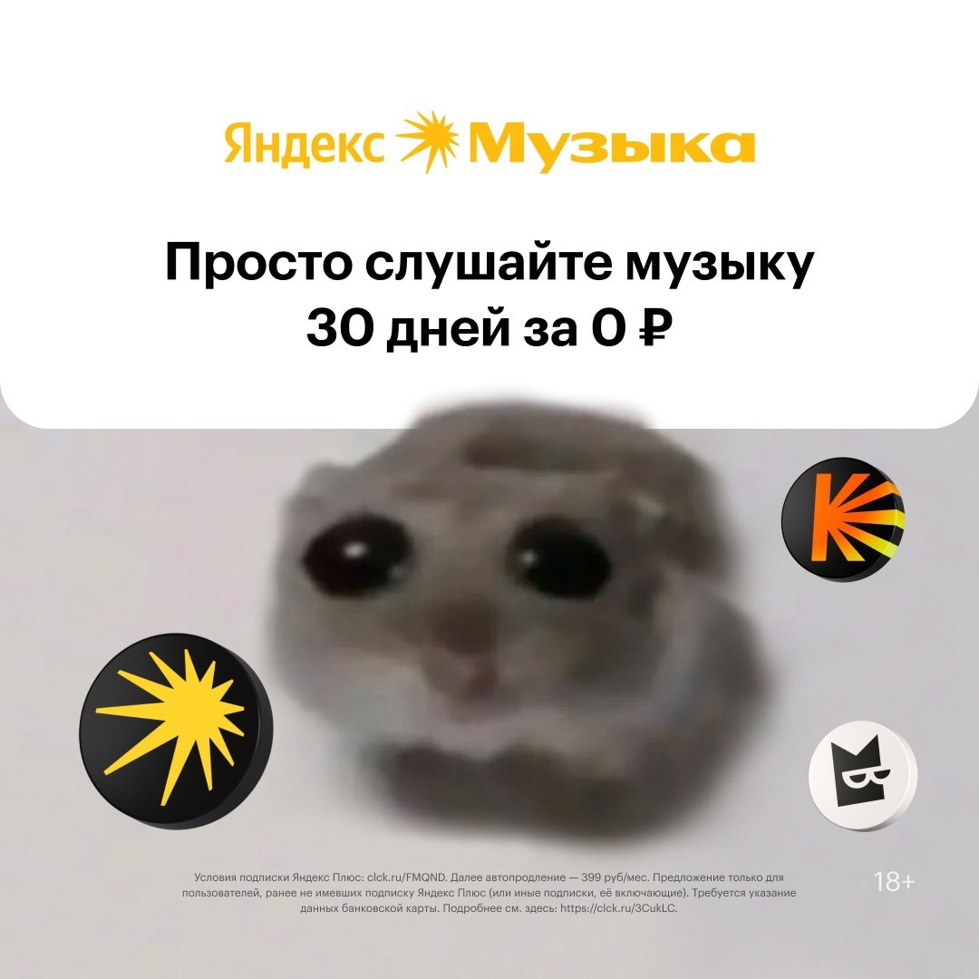 Поздравляем! Вам попался промокод на целый месяц Яндекс Музыки бесплатно! Ваш промокод: ANB5SUPNBY Активируйте промокод по ссылке: https://vk.cc/cLW9Qs Слушайте любимые треки вместе с близкими на 4 аккаунтах и 10 устройствах. https://vk.cc/cLW9Qs