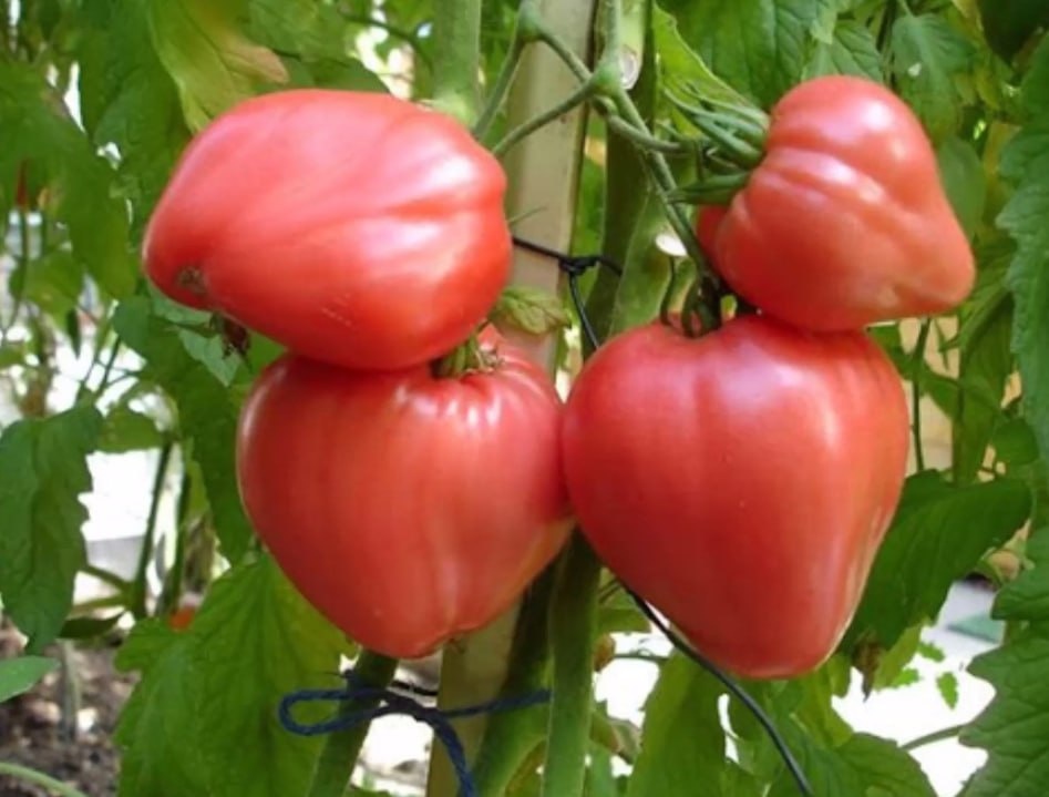 Бычье сердце 🌱🍅 Сорт томата "Бычье сердце" имеет запутанную историю происхождения. Хотя он был зарегистрирован в Госреестре в 2003 году, многие дачники уверены, что этот сорт выращивали еще их бабушки. Это говорит о его популярности и долговечности! 🕰 Характеристики сорта - Тип: Детерминантный (ограниченный рост) 🌿 - Высота куста: 0,8 – 1,2 м (требует подвязки) 📏 - Плодоношение: Первая плодовая кисть закладывается на 8-9 листах, следующие – через 1-2 листа. Всего на растении должно быть 4-5 кистей с 2-5 плодами в каждой. 🍅 Плоды - Размер: Средний (108 – 225 г), но могут достигать до 500 г на первых кистях. - Форма и цвет: Сердцевидные, классического красного цвета, мясистые и сладкие. ❤️ - Урожайность: 3 – 4 кг с 1 кв. м. 📈 Сроки созревания "Бычье сердце" — поздний или среднепоздний сорт (120 – 130 дней до урожая), подходит для открытого грунта и теплиц. 🌞 Место Выбирайте солнечные участки для посадки, чтобы плоды были сладкими и крупными. Избегайте мест, где ранее росли п