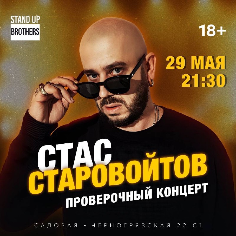 Стас Старовойтов с проверочным концертом в Стендап Бро🎙️ Один из первых резидентов StandUp ТНТ, актёр фильмов «Батя» и сериала «Стас» пишет новый концерт, который мы увидим на самом этапе создания, когда можно наблюдать за тем, как он обретает свою форму. Приходи слушать новый час шуток Стаса уже 29 мая в 21:30. 🎟️ Билеты по 1500 уже в продаже