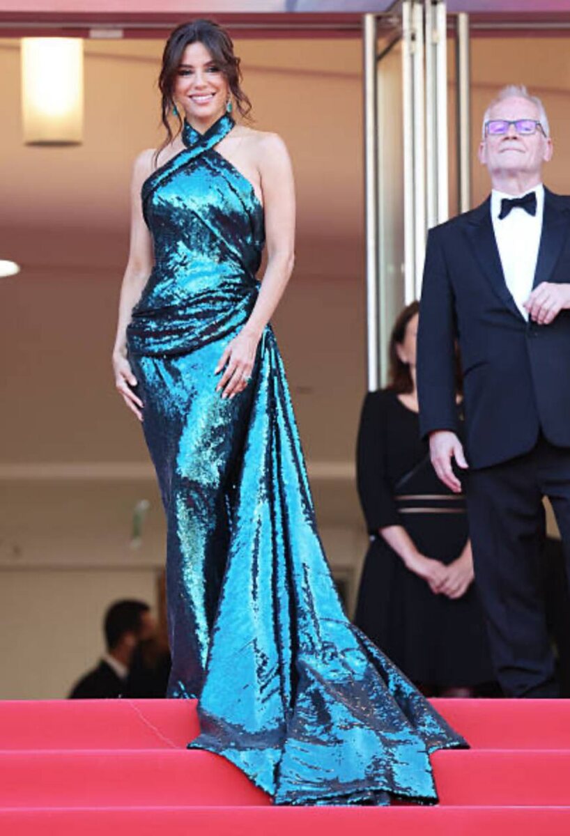 Ева Лонгория поддерживает блистательное настроение Хайди Клум. Также Elie Saab и украшениях Chopard.