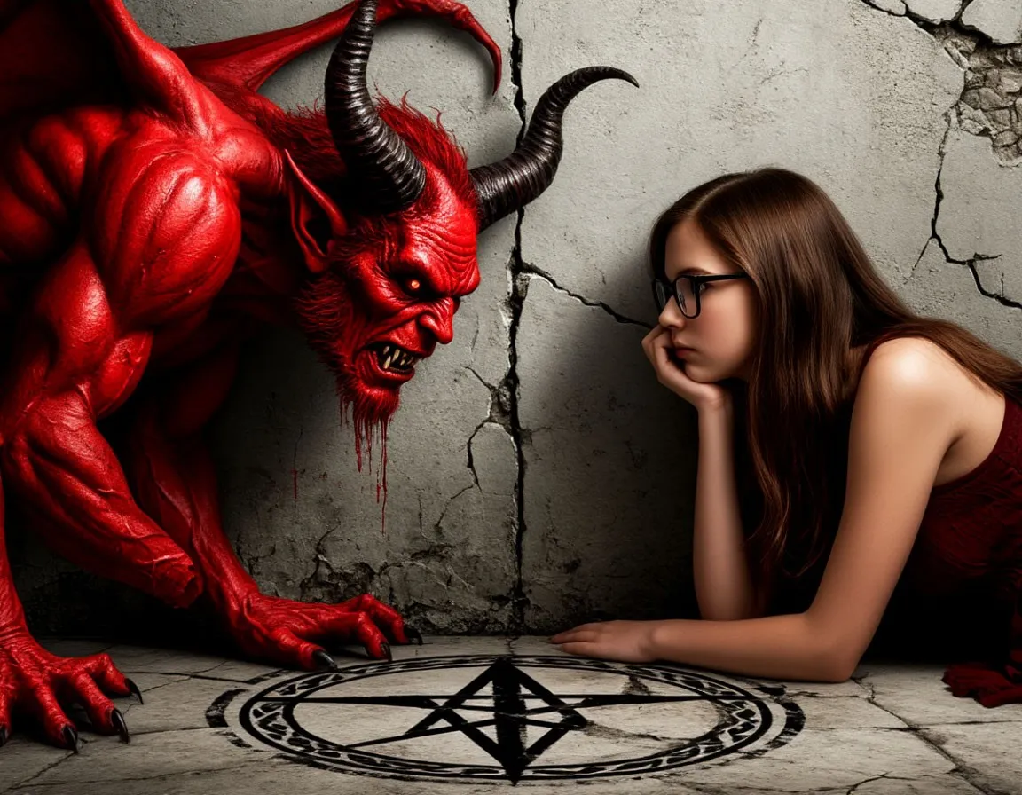 Демон все еще торчал из стены. С минуту я разглядывала его красное перекаченное тело – вернее, только верхнюю половину – длинные руки, косматую голову, рожки. Демон предпринял еще одну попытку выбраться, не преуспел и спросил: