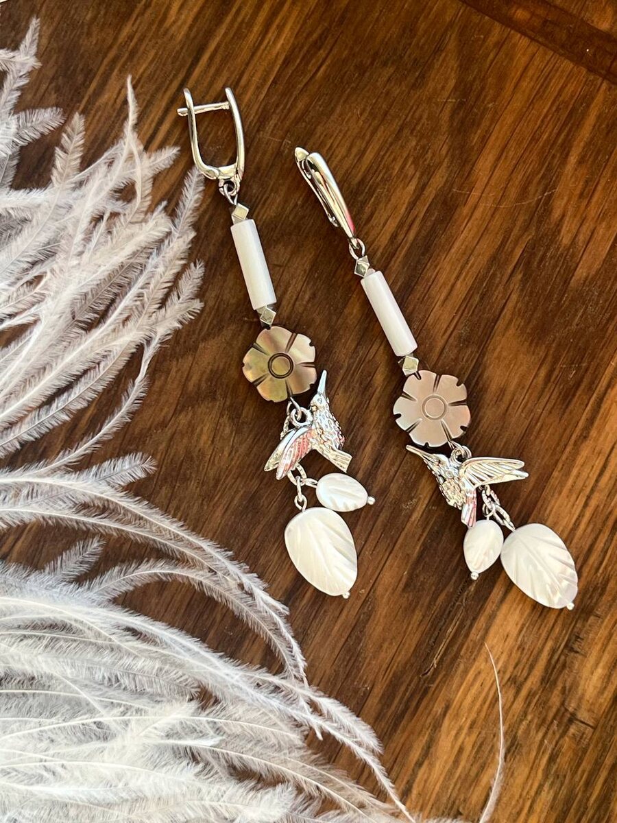 Надо уже что то новенькое выложить! А вот. Новые серьги, романтично сфотканые в лучах заката, поэтому ничего не видно) ☀️ Расскажу: серьги из перламутра двух цветов: белый и волшебно дымчато розоватый🌸 И птички невелички колибри! 🦜 Вообще нежно. И изящно, перламутрово, и дзинь Привезу в понедельник на Кузнецкий, 1900 руб. Я их еще в сторис выложила, посмотрите за кофеечком, всем прекрасного вечера!😘