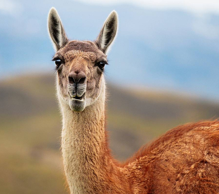 Перед вами поистине дивный зверь. Ныне живущий предок одомашненной человеком ламы. Это гуанако – покоритель южноамериканской пампы, пустынь и высокогорий Анд. Дедушки-гуанако размерами заметно уступают внучкам-ламам, при длине тела до 175 см и высоте до 130 см они набирают не более 140 кг массы. Оно и понятно: с избыточным весом по горам особо не поскачешь, а забираются они на высоту до 4000 м над уровнем моря. Воздух на такой высоте разреженный, но гуанако к этому готовы. Их кровь исключительно богата эритроцитами, что позволяет им выживать на таких больших высотах. В чайной ложке крови гуанако содержится около 68 миллионов эритроцитов, что в четыре раза больше, чем у человека. Да и по равнинам они довольно резво рассекают, при необходимости набирая скорость до 64 км/ч. И если в пампе климат ещё куда ни шло, то в полупустынях и, тем более, пустынях выживать значительно тяжелее, а гуанако и на такое способны. Во-первых, они могут долго обходиться без воды, а траву в рационе спокойно за