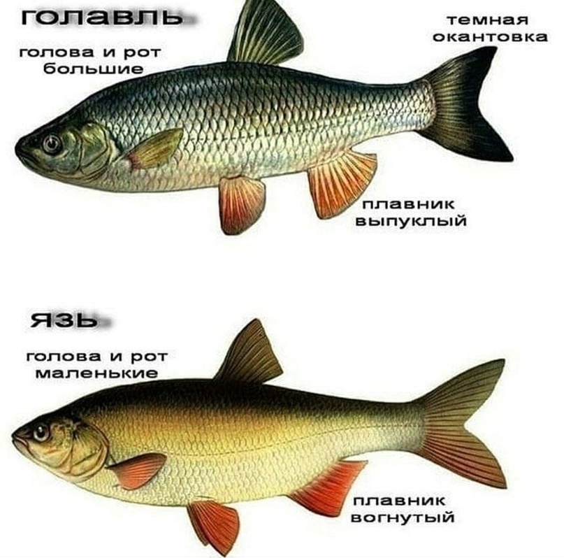 Внешне их отличить несложно – недаром в латинском названии голавля есть cephalus – голова. У него голова больше, шире и лобастая. У язя меньше и плоская. Глаза у голавля больше и выразительнее. Вы его даже можете узнать по глубокому взгляду светлых глаз. А у язя глаза желтовато-зеленые. Рот у голавля больше, и губы более мясистые.