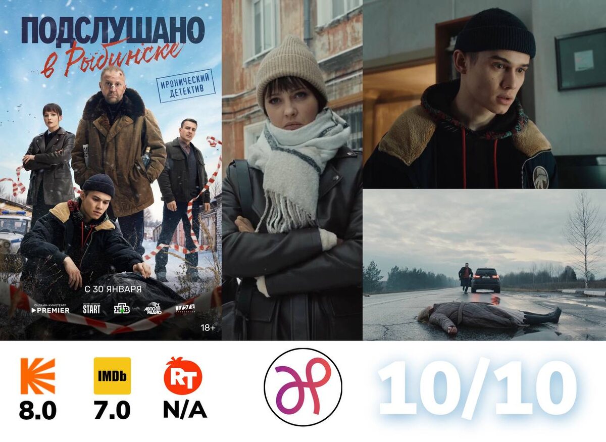 #детектив #комедия #сериал Подслушано в Рыбинске (2024) Выдающийся сериал Петра Тодоровского и Ивана Баранова, о местном колоритном пройдохе, который получает дар предвидения преступлений. Как раз в этот момент убийств становится как никогда много. Наш «провинциальный» ответ «Особому мнению», только вместо сложного фантастического мира, нас ждет антураж маленького российского городка, с понятными и приятными героями. Если честно, один из лучших проектов, что выдавали наши киноделы за последнее время. Хоть на цитаты разбирай, хоть гадай детективную линию, хоть смейся над тонкими юморесками (идеально прописанными). В мой топ года. Кто бы мог подумать. ▶️ Трейлер