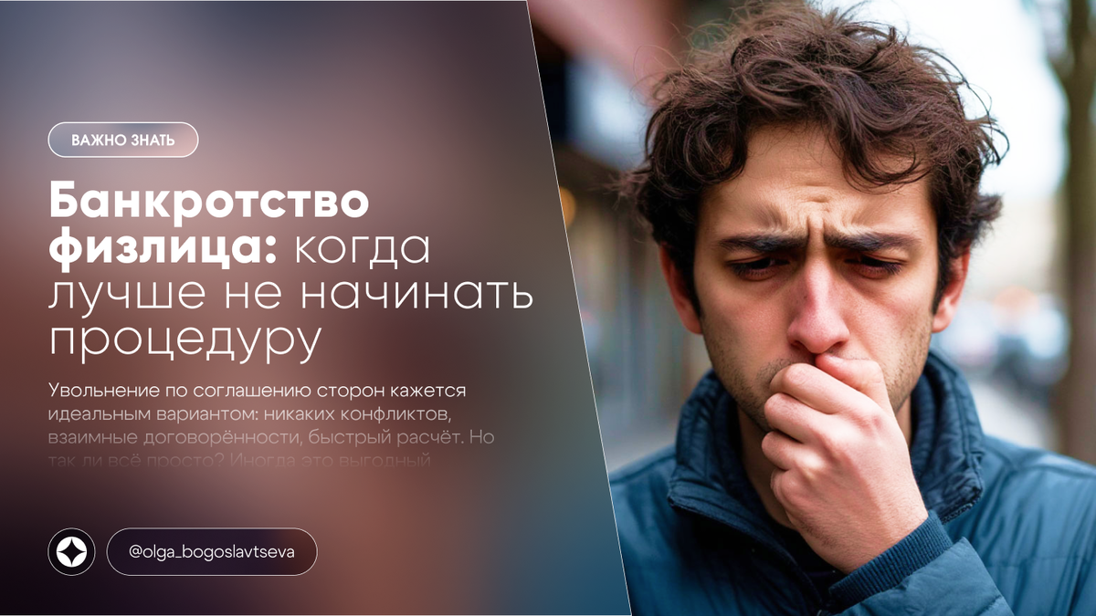 Банкротство физического лица — это законный способ списать долги, но не всегда он выгоден. Некоторые люди, не разобравшись, подают заявление в суд, а потом сталкиваются с новыми проблемами: испорченной кредитной историей, потерей имущества и даже уголовной ответственностью. Разбираемся, в каких случаях банкротство — плохая идея, и как не сделать себе еще хуже. Банкротство — не бесплатный процесс. Нужно оплатить: Если у вас нет работы и сбережений, суд может просто отказать в банкротстве, а долги останутся. Что делать? Если вам должны меньше полумиллиона, банкротство может быть избыточным. Ведь после списания долгов: Что делать? Не все знают, но даже в банкротстве можно лишиться: Если у вас есть что терять, подумайте дважды. Что делать? Если вы перед банкротством: Финуправляющий и кредиторы могут оспорить такие сделки, а вас привлекут к уголовной ответственности (ст. 159.1, 196 УК РФ). Что делать? Банкротство не решает проблему безденежья — оно лишь списывает старые долги. Если вы: Чере