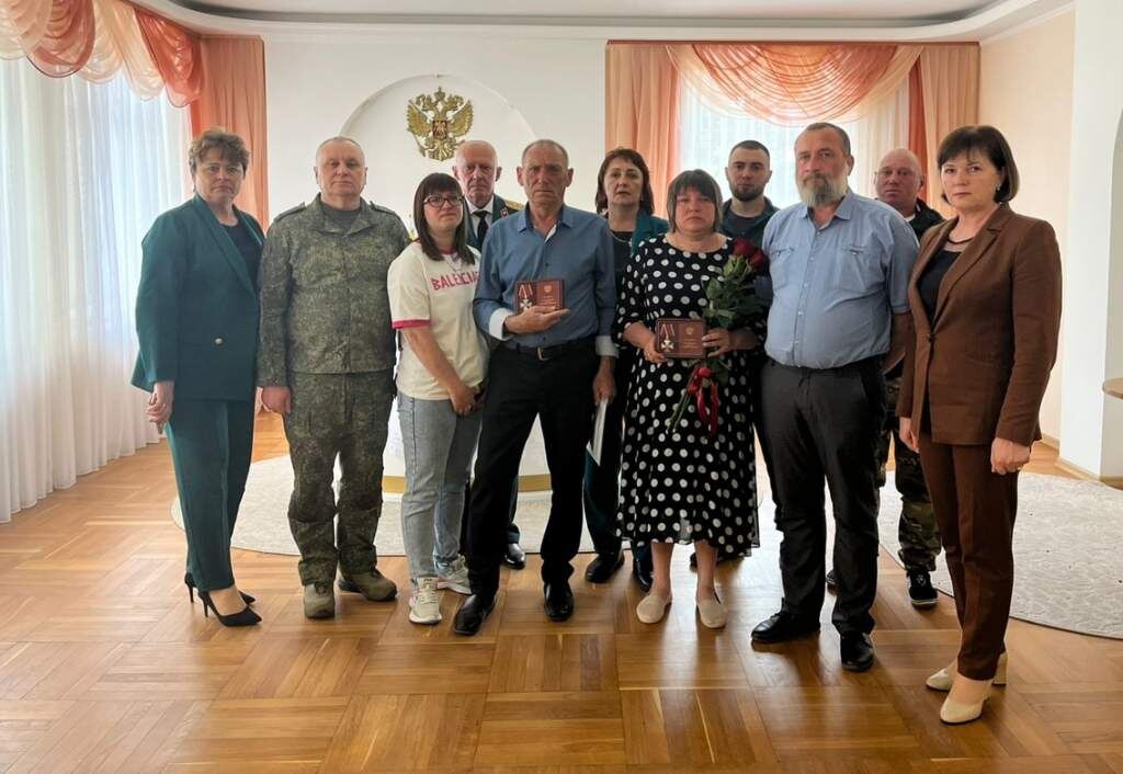 Сегодня, 14 мая, в зале обрядов ЗАГСа Администрации Веселовского района состоялась церемония вручения государственных наград участникам специальной военной операции – Ордена Мужества (посмертно) Анатолию Перегудову и Владимиру Верещагину. История России – это история воинского подвига. Защита интересов государства – благородное дело настоящих мужчин, преданных Родине и своему народу. Во время проведения специальной военной операции добровольцами и контрактниками стали многие наши земляки, которые отдают воинский долг Родине со всей ответственностью, проявляя героизм и мужество. Сегодня мы склоняем головы в память о наших земляках Владимире Верещагине и Анатолии Перегудове, погибших в ходе специальной военной операции. Указом Президента Российской Федерации Владимир Верещагин и Анатолий Александрович Перегудов за мужество и героизм, проявленные в ходе выполнения задач специальной военной операции, награждены орденом Мужества (посмертно). На церемонии вручения государственных наград прис