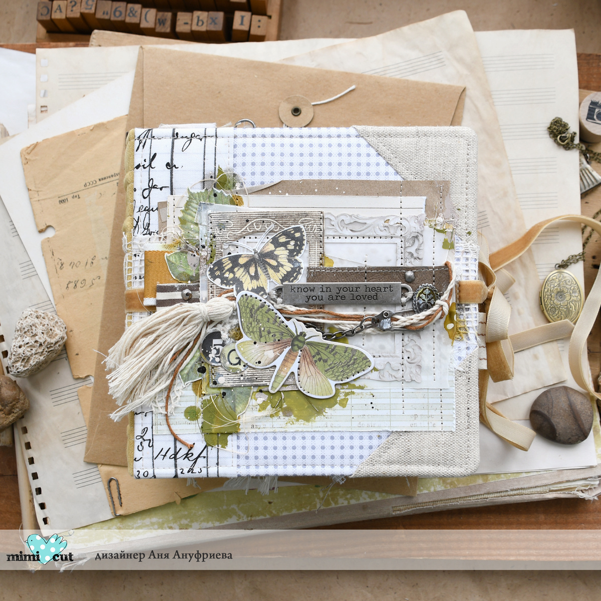 Привет, друзья! С вами Аня Ануфриева и сегодня я покажу вам свой новый альбом с летним уже настроем и настроением. Зелень, цветы и солнечные зайчики - вот его девиз! А самое в нем главное и приятное - праздная безмятежность) Столько уюта и неги на его страничках, альбом о днях, когда спешить ну совсем не нужно! Для широкого освещения выбранной темы мне, естественно, совершенно необходимы были цветы: крупные соцветия из сета "Стрекозы быстрыми кругами" - мой выбор! Обожаю их!" Я просто обожаю использовать в своих работах рамки (собираю свою коллекцию любимчиков в мятных конвертах) и в этот раз выбрала сеты "Бабушкин альбом" и "Щелкунчик". Ручки из набора "Дай мне руку" тоже идеально вписались в композиции, держат нити или надписи - все функционально) Немного фольклора я добавила с помощью ножей из наборов "Дерево жизни" и "Народный узор", идеально смотрятся в любых работах и летним проектам тоже к лицу! Давайте смотреть: Вот такой красавчик))) Как вам? Спасибо за внимание! Ваша мимип