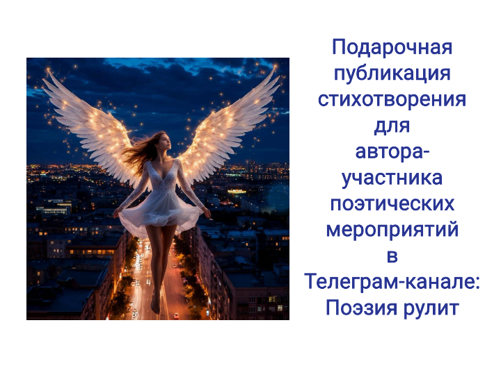 Подарочная публикация стихотворения для призëра поэтической игры "Экспромты 10" Я ночами по небу летаю Я ночами по небу летаю, Нот про это пока промолчу. По луне и по звёздам скучаю, Их поближе познать я хочу. Проклинают меня все родные, И не верит в меня мой супруг. Под запретом полёты любые, Стал врагом самый близкий мой друг. Крылья сломаны, брошены в реку, И брожу я, как тень, средь людей. Без мечты как прожить человеку? Как на свете прожить без идей? Часовщик, почини моё время, Как секунды проходят, года. Покажи, что ты мастер на деле, Возврати меня снова туда, Где ещё я совсем молодая, В беззаботную юность мою, Где во снах я по небу летаю, Где так искренне всех я люблю. ~ Автор стихотворения и клипа : Александр Фомин ~ Телеграм: Поэзия рулит #стихи #стихи_авторов #поэзия_рулит