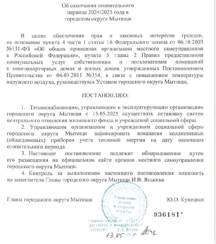 С завтрашнего дня в Мытищах отключают отопление🔥