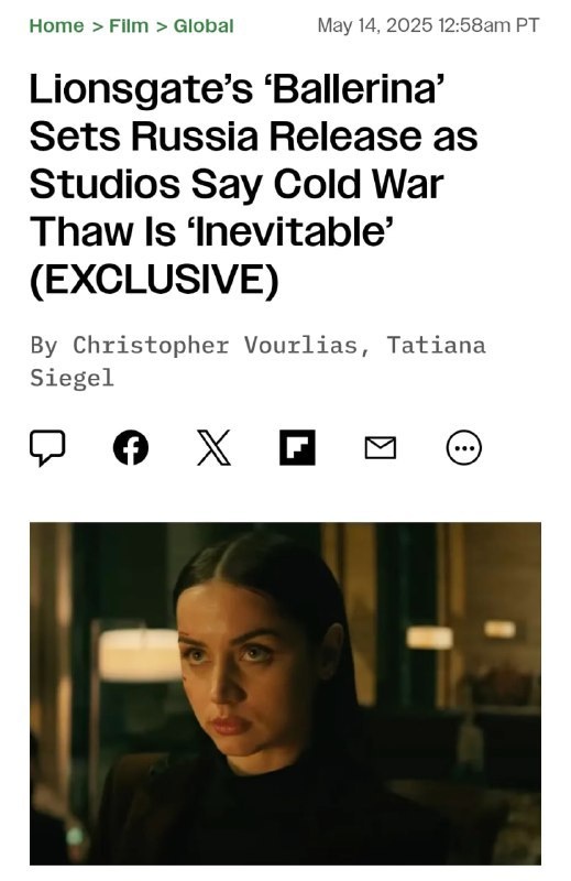🎬 Голливуд возвращается в Россию — первой ласточкой станет Lionsgate с премьерами «Балерины» и «Иллюзии обмана 3». Инсайдеры шепчут: «холодок» тает, оттепель близко. Variety пишет, что это выгодно всем — кассы в США просели, а наш рынок может вернуть студиям прежний размах. A24 и Neon и так рубили в России даже во время СВО, а теперь и крупняк подтягивается. Ждём большой кинодоговорняк где-то в Стамбуле. 🍿🇷🇺 Подробнее: https://hard-tm.su/threads/90353/ 🕹HARD-TM — Подписаться