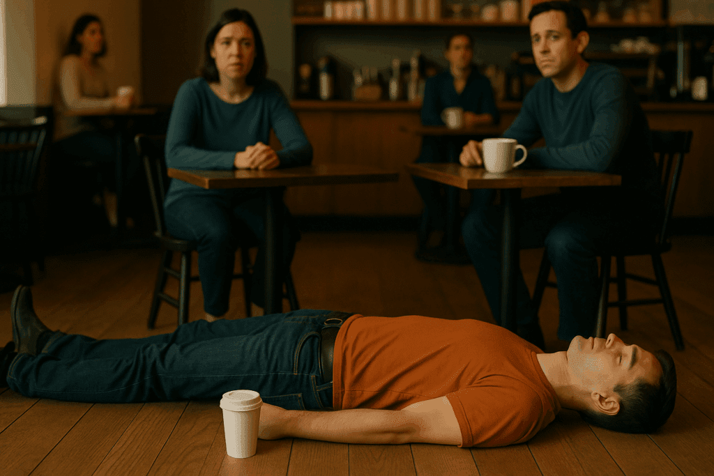 Каждое утро начиналось с упражнения от Тима Ферриса. Я заходил в кафе, заказывал кофе… и ложился на пол. Просто так, посреди заведения. На двадцать секунд. Люди смотрели с недоумением, кто-то шептался. Но я лежал. А потом вставал, забирал свой кофе и начинал день. Это была маленькая победа над собой. Победа над страхом.