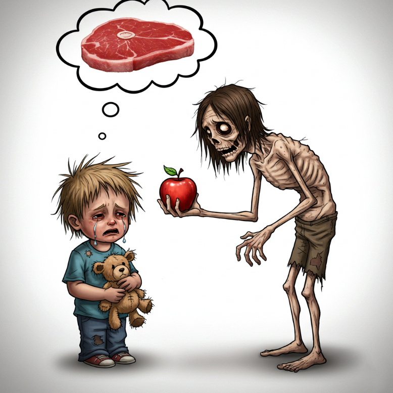 "Отец", который из страха перед безосновательными веганскими мифами лишает своего ребёнка этих важных нутриентов, проявляет не отцовскую заботу, а безответственность и фанатизм. Он ставит свои заблуждения выше здоровья собственного чада, обрекая его на потенциальные проблемы со здоровьем и задержку развития.