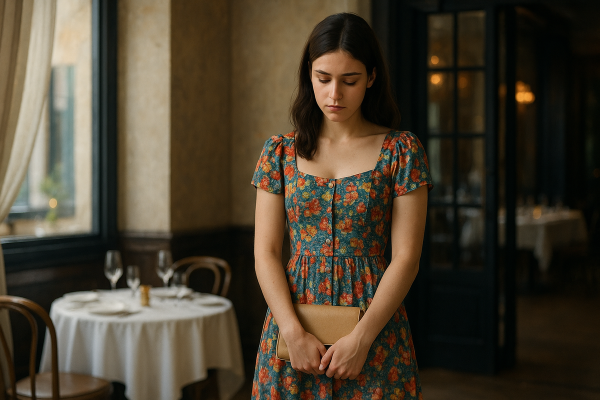 Она стояла на остановке, ожидая автобус, который должен был отвезти ее к этому шикарному ресторану, к этой пугающей неизвестности.