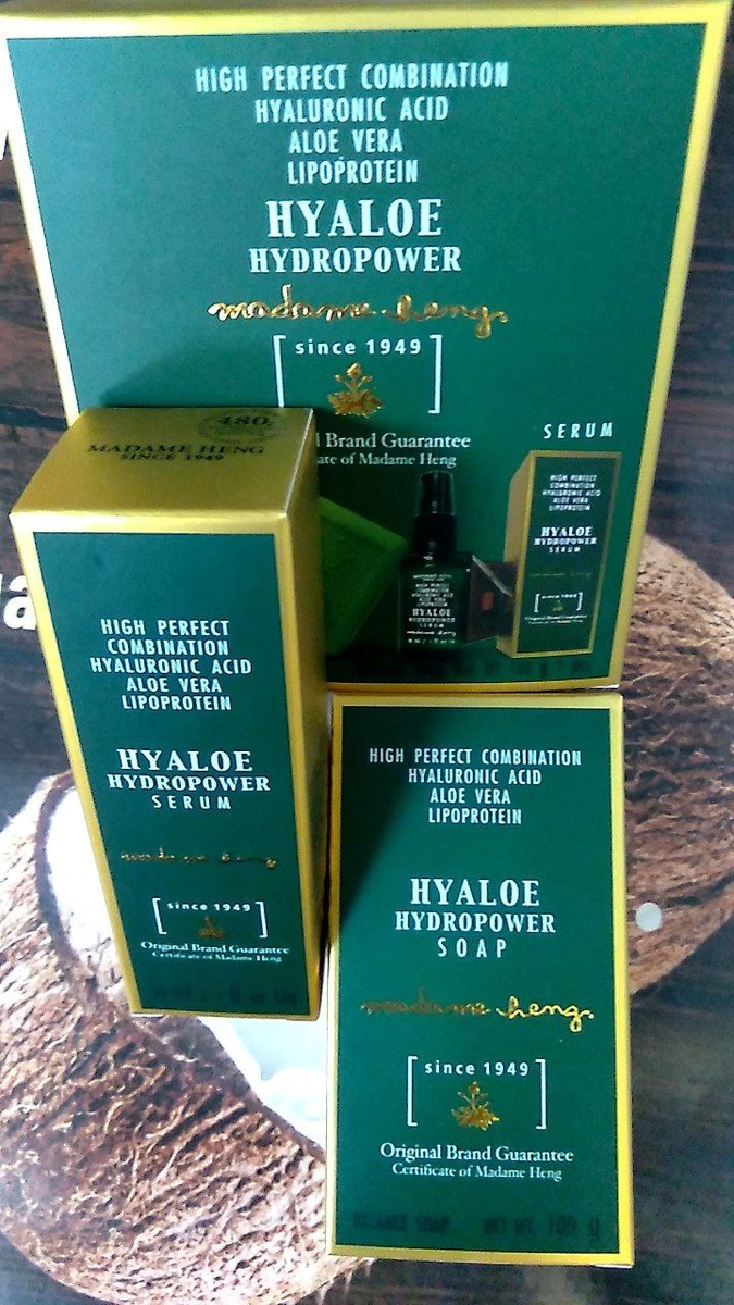 🌸Гиалуроновая сыворотка + мыло с алое и гиалуронкой, набор от Мадам Хенг Madame Heng HYaloe hydropower soap 80 gr + serum 30 ml 🌱Концентрированная сыворотка плюс увлажняющее нежное мыло для люкс ухода за кожей лица с силой трех омолаживающих компонентов – гиалуронка, алое вера и липопротеиновый комплекс для сбалансированного увлажнения, упругости и молодости кожи от тайского производителя Мадам Хенг. 🌱Тайская марка Мадам Хенг существует с 1949 г. и, за более чем 60 лет работы, зарекомендовала себя как производитель эффективных лечебных средств по уходу за кожей с натуральным составом. 🌱Омолаживающий кожу результат после использования концентрированной сыворотки и мыла Мадам Хенг не заставит себя долго ждать, очевидным будет: 🌱Уменьшение морщин. Супер увлажнение кожи, ровный красивый тон кожи, упругость и свежесть. Сужение пор, заживление прыщиков и ранок. Сосудистая сеточка (купероз) станет менее заметной. 🌱Способ применения гиалуроновой сыворотки Мадам Хенг Hyaloe: 🌱Очи