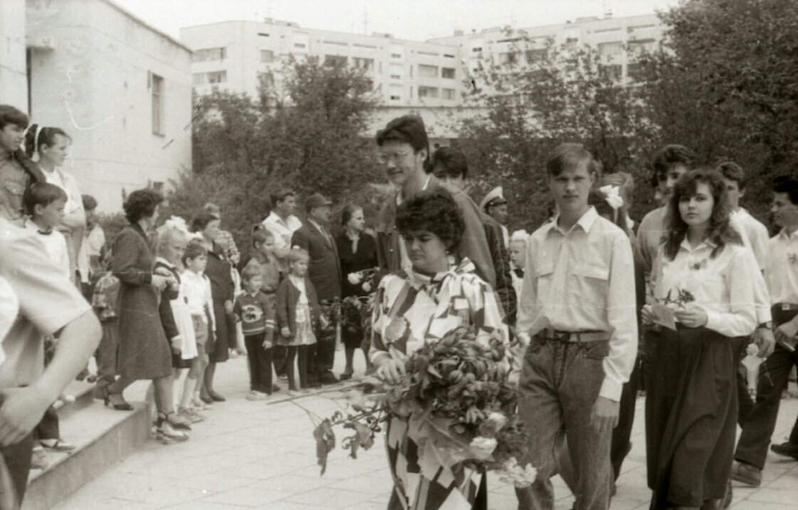 ПРО ФОТО: а теперь в обратный путь за своим Классным руководителем, к Экзаменам и Выпускному, так сказать во взрослую жизнь, входом в которую является вход в супружество, дети, как родители, коллеги, есть голова семьи, к ней и обращайся, и если посчитает нужным, согласится, а на нет и суда нет, не твоё дело, над головой этого организма Сам Бог, на всё Воля Его, обращайся к Нему, если что. Другие подробности - под двумя предыдущими фотографиями. А тут мальчик в светлой рубашке (тоже справа) это Ельников Алексей, мой наставник по езде на картинге, ходили вместе заниматься в ПТУ-7, возле Школы-23, об этом писал.