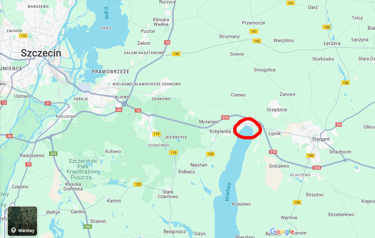 Я хочу показать вам пример места, которое мне очень нравится и которое я часто посещаю. Так как мне не нравится суматоха в этот период, я однажды отправился туда прогуляться во время майских выходных. Это зона отдыха на озере Медви. Это довольно большое озеро, пятое по величине в Польше. Он расположен между городами Щецин и Старгард. От Щецина это примерно 30 км, так что недалеко. Из Штаргарда это еще ближе, так что добраться туда можно на рейсовом городском автобусе или на велосипеде — удобная велосипедная дорожка приведет вас прямо к озеру.