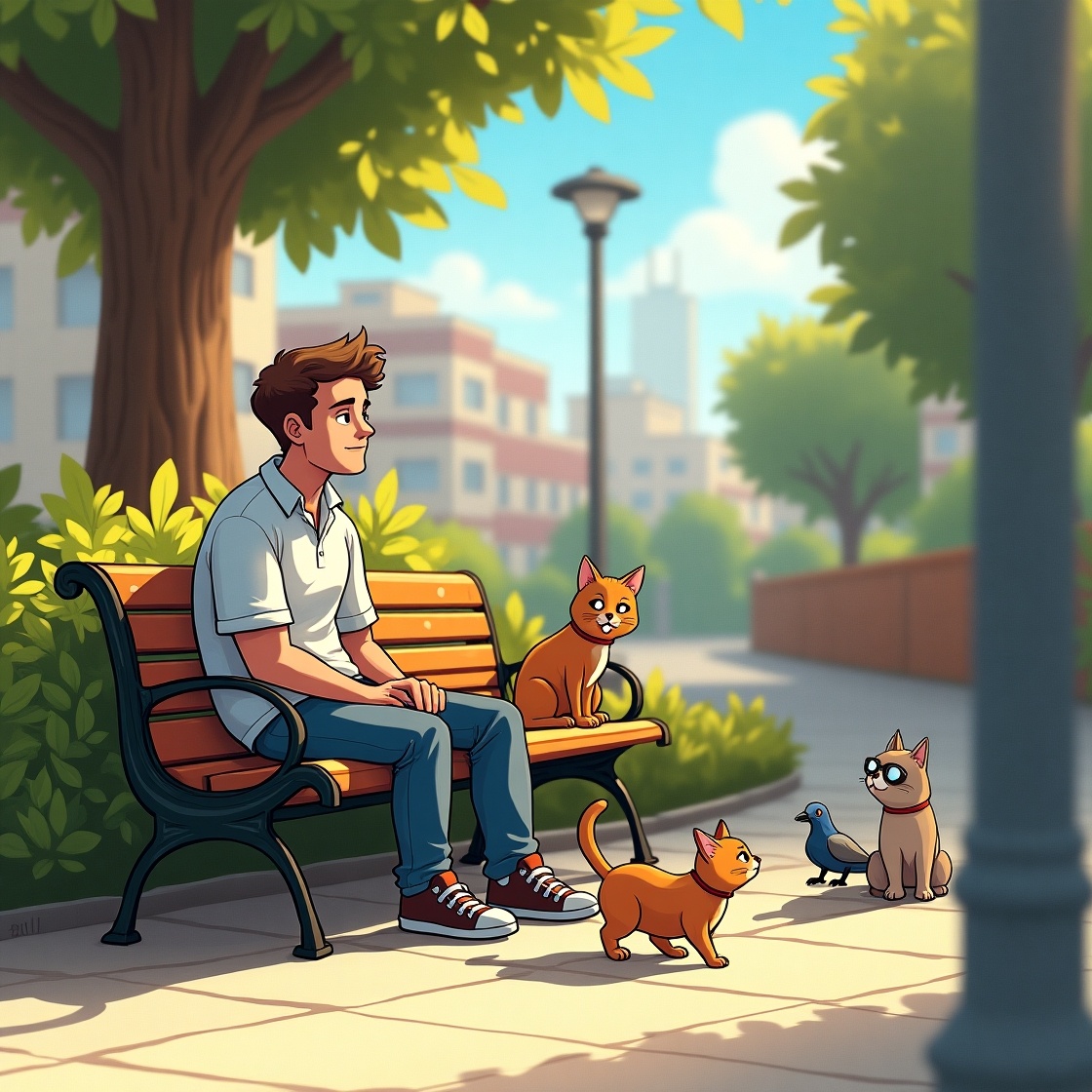Или как обычная прогулка превратилась в мини-сериал с хвостами и заговором Вышел на улицу, как нормальные люди - подышать. Воздух у реки - сказка, сосны пахнут детством, лужи отражают небо, и всё вроде бы тихо и размеренно. Присел на скамейку в парке, раскрыл булочку с маком и уже собирался наслаждаться моментом… пока не увидел ЕГО. Не человека. Кота. Сидит такой на соседней лавке, глядит прямо на меня. Причём взгляд - как у налогового инспектора, который знает, что я не задекларировал сарай. К нему подрулил второй. Переглянулись. Исчезли в кустах. И вот тут во мне проснулся внутренний следователь из сериала с плохой озвучкой. Я поехал за ними. Осторожно, будто сам кот в душе. Эти хвостатые двигались по парку у реки с такой координацией, что я начал подозревать их в военном прошлом. Один прыгнул на скамейку, другой залез на дерево, третий вынырнул из-под лодочного причала. Я делал вид, что любуюсь природой. Но на самом деле следил. А они, кажется, тоже. Подошла женщина с пледом и