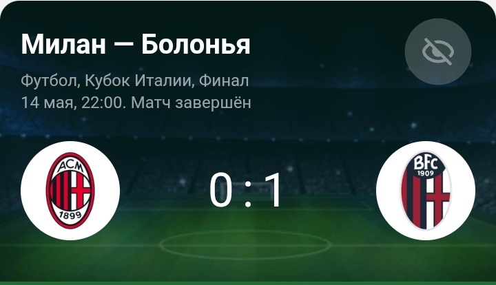 Результат и ключевые моменты: - Победитель: «Болонья» одержала победу со счётом 1:0, завоевав Кубок Италии в третий раз в истории и впервые с 1974 года . - Автор гола: Швейцарский полузащитник Дан Ндой забил на 52-й минуте после рикошета от защитника «Милана» Тео Эрнандеса. Гол был засчитан несмотря на споры об офсайде . - Лучшие моменты: - В первом тайме «Болонья» доминировала, создав шесть ударов против двух у «Милана». Голкипер «россонери» Майк Меньян спас команду от гола после выхода один на один Орсолини . - Во втором тайме «Милан» не смог переломить игру, несмотря на тройную замену Консейсау. Команда ограничилась одним ударом в створ и не реализовала финальный штурм в компенсированное время . Тактика и тренерские решения: - «Болонья» под руководством Винченцо Итальяно сделала ставку на агрессивный прессинг и быстрые контратаки. После гола команда перешла на оборону с тремя центральными защитниками, что полностью нейтрализовало атаки «Милана» . - Сержиу Консейс