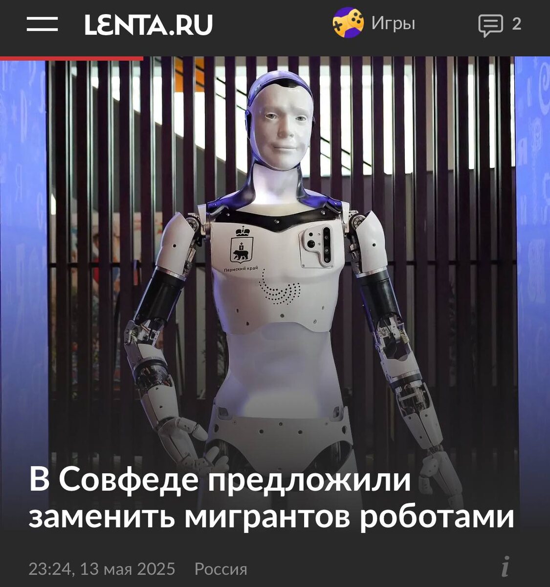 Заменить мигрантов на РОБОТОВ предложили в Совфеде. Сенатор Сергей Муратов считает, что обучать нужно не приезжих, а россиян, которые будут управлять техникой. Роботы не болеют, не хулиганят, не пьют, не дебоширят и не насилуют, — добавил он. Киберпанк сегодня такой.