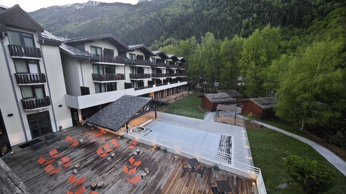 Утренний вид на гору Монблан с балкона номера.