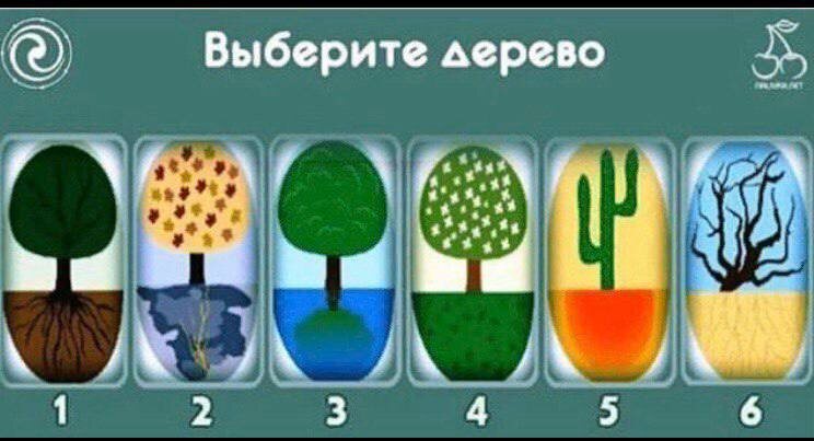 Посмотрите на картинку несколько секунд. На ней изображено 6 видов разных деревьев с различной коневой системой. Выберите дерево, которое больше всего вам понравилось.