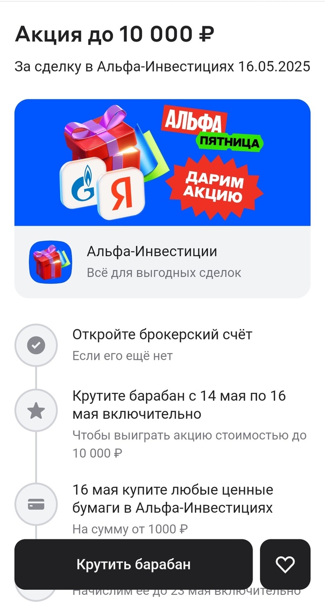 Барабан в Альфа пятницу или акция в подарок от Альфа инвестиций