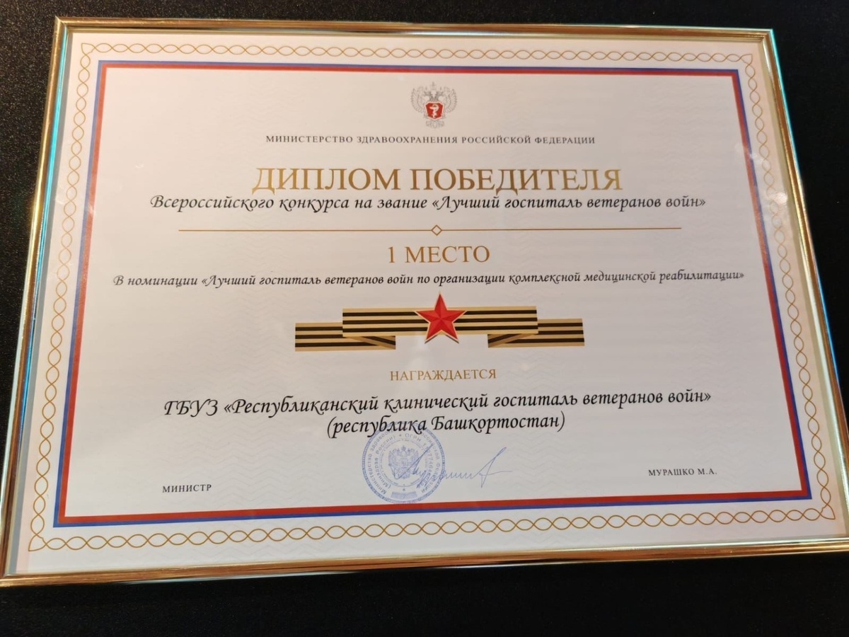 Республиканский госпиталь ветеранов войн Башкирии стал лучшим в России по организации медицинской реабилитации, о чём сообщил Радий Хабиров При оценке учитывались различные факторы, в том числе современное оборудование и мнение пациентов. Министр здравоохранения РФ Михаил Мурашко вручил награду представителям госпиталя. В госпитале традиционно проходят лечение пожилые жители Башкортостана, а с 2022 года — участники СВО. Здесь они могут получить высокотехнологичную, комплексную медицинскую, а также психологическую реабилитацию. «Это действительно очень значимая для нас победа, — подчеркнул Радий Хабиров. — Всего с начала СВО в госпитале пролечились более 5 тысяч бойцов. Большинство из них вернулись на передовую, чтобы продолжить службу. И это, конечно, главный показатель качества помощи, которую тут оказывают. Поздравляю коллектив нашего госпиталя! Благодарю за профессионализм и отличную работу».