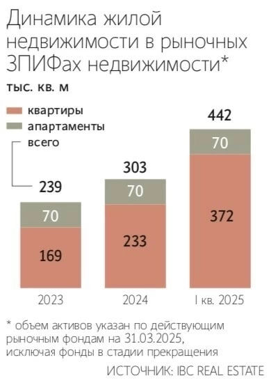 ⚡️ Объём активов ЗПИФ в недвижимости вырос на 85% за 15 месяцев — IBC Real Estate С конца 2023 года площадь объектов в управлении ЗПИФов выросла до 442 тыс. м², а объём активов — с 5,9 до 24,3 млрд руб. 👉 Только за 2024 год вложения выросли почти в 5 раз, а в первом квартале 2025-го — утроились по сравнению с тем же периодом прошлого года. По словам экспертов, фонды стали удобным юридическим инструментом для девелоперов и инвесторов — они упрощают владение активами, оптимизируют налоги и повышают прозрачность. Часто ЗПИФы используются для привлечения финансирования в условиях дорогих кредитов.