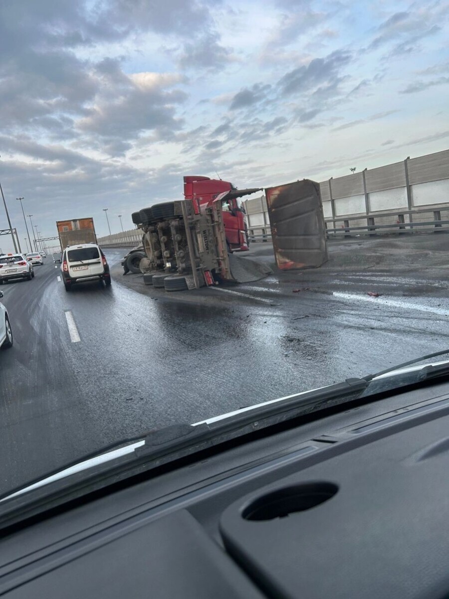 Утром на КАД перевернулся грузовик, растет пробка