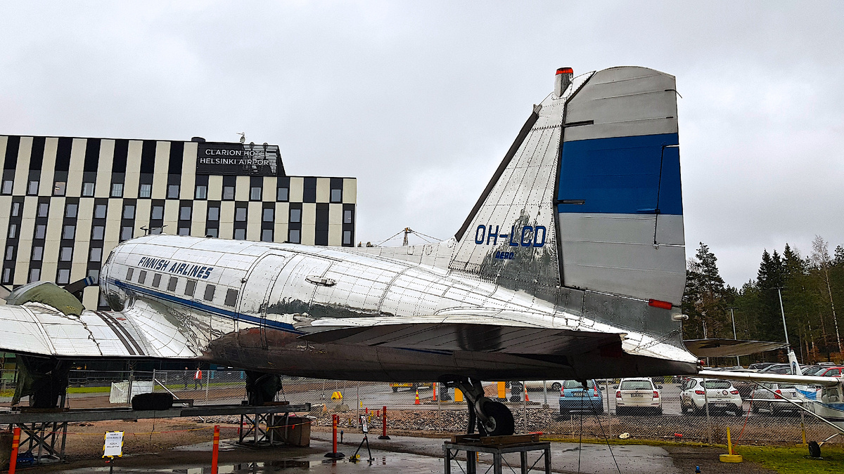 Я учился проектировать и строить металлические самолеты, конструировал и строил их. Именно по этой причине не смог пройти мимо прекрасного Дугласа перед входом в авиационный музей. Самолет не просто в хорошем состоянии, он просто ПРЕКРАСЕН, этот металлический, алюминивевый САМОЛЕТ! Douglas DC-3C с регистрационным номером OH-LCD был построен на Лонг-Бич в 1943 году как C-47A-75-DL. Машина участвовала в посадке в Нормандии в июне 1944 года. Финское государство закупило машину 12 июня 1946 года. Самолет был модифицирован до DC-3C-S1C3-G на Fokker Airplane Factory и в таком виде эксплуатировался до 1964 года, когда был доработан и получил большую грузовую дверь по левому борту. Самолет использовался ВВС в качестве картографической и транспортной машины, пока не был выведен из эксплуатации в 1985 году. Позже самолет был отремонтирован в Музее авиации Финляндии.