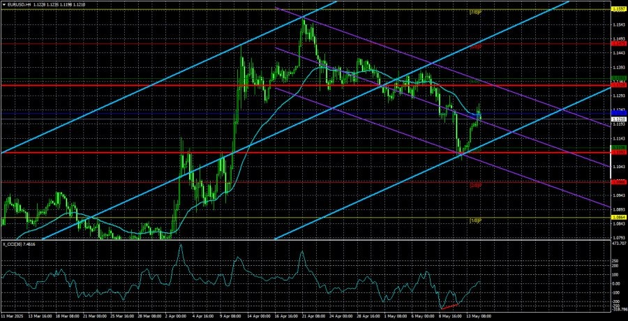 https://basechop.ru/wordpress/?p=42713 Валютная пара EUR/USD в течение среды продолжала восстановление на фоне абсолютно пустого календаря макроэкономических событий. Мы даже не отмечаем единственный отчет дня по инфляции в Германии, так как он изначально не имел никаких шансов повлиять на движение валютной пары. Да он и не нужен был. На этой неделе у трейдеров нет дефицита новостей и поводов открывать торговые позиции. Еще в понедельник стало известно о том, что Китай и США договорились на первой же встрече, поэтому пошлины на импорт будут снижены до 30% против 10%. По сути, обе стороны убрали большую часть пошлинных ограничений, и теперь торговля между двумя крупнейшими экономиками мира вновь возможна. Однако сей фактор недолго оказывал поддержку американской валюте… Уже во вторник началось мощное падение доллара, которое изначально было спровоцировано технической необходимостью скорректироваться, а затем слабым отчетом по инфляции. Здесь мы не можем в очередной раз не отметить…