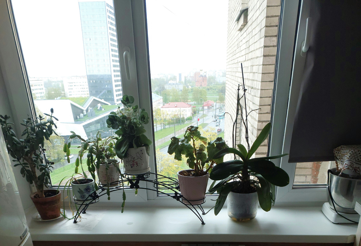 Здравствуйте! С окнами я справилась! В среду собиралась ехать на кладбище, но прсмотрев погоду( дожди) переоделась и побежала на лед. Хорошо покаталась, народу было мало. Пришла домой уставшая. Сварила пельменей и легла отдыхать, а два грязных окна мне покоя не давали. Знаю когда солнце лучше не мыть окна - разводы остаются, а в дождь? Дождик был не очень сильный по окнам не попадал. Часик отдохнула после тренировки и пошла мыть окно. Решила вымыть с начало на кухни, так как оно немного меньше и там у меня нет никаких штор. Не люблю снимать и вешать шторы. У меня не удобные карнизы с крючками, забыла как они называются, так для меня это просто ужас снять и повесить шторы . С окном я справилась быстро, за час . Смотрю и дождь закончился. Вернула цветы на кухню, я их убирала зимой . Делала фото зону, но дочка сказала, что зона плохая и подарила мне специальную коробку для съемок( не знаю название🤣) так что цветы вернулись на кухню. Кстати на кухни лучше всего растут мои цветы