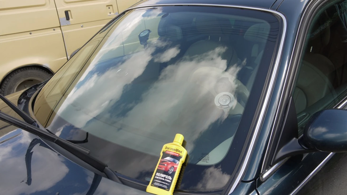 *маркер (для обозначения границ повреждённых участков с внутренней стороны стекла).Пошаговая инструкция: Тщательно промойте стекло и вытрите его насухо, чтобы не было разводов. Осмотрите стекло на свет, отметьте границы повреждённых участков маркером. Закройте полиэтиленовой плёнкой те места, на которые не должна попасть полировочная паста (например, участки капота и крыши). Нанесите полировочную пасту на насадку и тонким слоем на повреждённый участок стекл