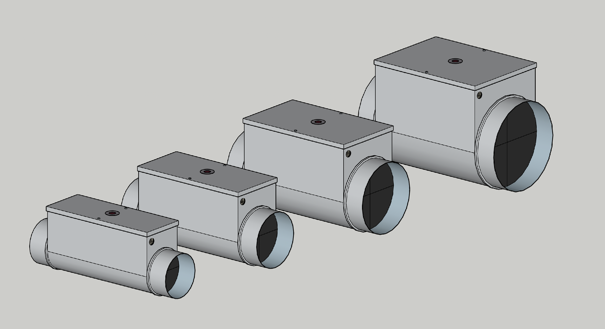 Добавочка электрических калориферов от Shuft. У себя буду использовать на выходе приточки под каждым окном (уже сделаны короба для этого и наполовину все подключено. Можно было бы не рисовать, но хочется собрать в Sketchup всю систему целиком, чтобы проще было проектировать ее активную часть, которая пока только в голове и до сих пор не знаю, как это все смонтировать на стену. В скором будущем будут еще охладители, рекуператоры, и прямоугольные фильтры, потому что я сглупил и не сообразил, что вместо того, чтобы упираться в круглый воздуховод, можно часть системы собрать на прямоугольном профиле. Чертеж из каталога. В этот раз оптимизировал строение ниппеля, чтобы было меньше полигонов и модель была полегче. Тут 4 размера: 100, 120, 160 и 200 мм Габариты коммутационной коробки у всех одинаковые, кроме ширины, которая соответствует диаметру воздуховода.