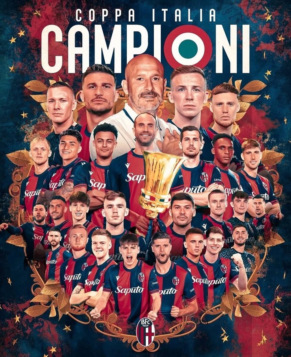 На табло горит счёт 1:0. Болонья — обладатель Кубка Италии 2025. Впервые с 1974 года. Игроки в слезах. Болельщики поют во весь голос. На трибунах зажигаются сотни красно-синих факелов.