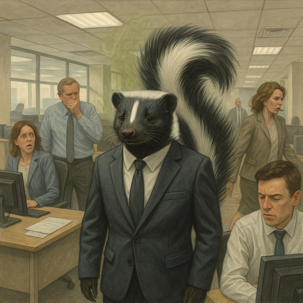 А потом поняла: в этой компании выживают не лучшие — а самые громкие. Через месяц её место занял человек, которого все тихо ненавидели — но руководство называло «энергичным». Он может накричать на коллегу прямо на совещании. Мерзко пошутить про нового стажёра. Публично обесценить чужую работу — и всё с той же самодовольной ухмылкой. Его не любят. Его побаиваются. Но его не увольняют. Наоборот — он “незаменимый”. Он “эмоциональный, но ценный”. Он — токсичный сотрудник, который умудряется выживать и продвигаться в любой среде. И пока команда выгорает, хорошие люди увольняются, а руководитель морщится от внутреннего дискомфорта — этот “скунс” уверенно чувствует себя в центре офиса. Потому что у него одна особенность: он оставляет за собой запах страха. И этому в компаниях почему-то до сих пор уступают. И это не случайно